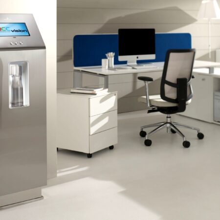 Die Tafelwasseranlage BCC Vision ist eine hochwertige Mietlösung mit stilvollem Edelstahl‑Design und IP65 Anti‑Vandal‑Tasten. Sie gibt auf Knopfdruck stilles, gekühltes oder kohlensäurehaltiges Wasser aus – optimal für moderne Büro‑ und Kundenbereiche. Mit robustem Gehäuse, integrierter Werbung/Info‑Bildschirm und hygienischer Bedienung bietet sie Technik, Marketingoptionen und Trinkwasser effizient aus einer Hand.